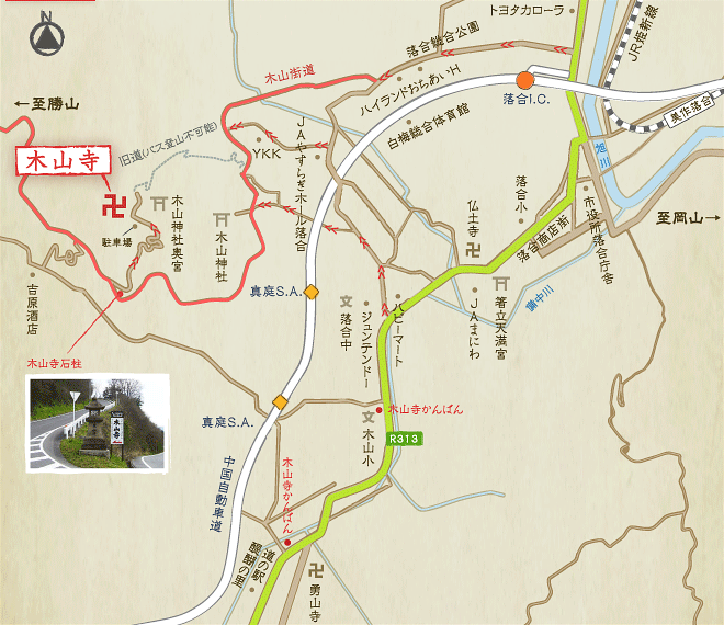 勃起始於Kukai在這片土地上由an夫般的老人帶領下,從那以後,僧侶們已經保護了好幾代人了。儘管由於明治政府的神道與佛教分離政策,原本是神道教和佛教傳統的木山神社和木山神社曾有分離的歷史,但它在中國各地都有信徒,這是一座著名的寺廟。主要佛像是Yakushi Ruriko Nyorai,第11飛機Kanzeon菩薩,守護神是Zenkai Inari大名神和Kiyama Ushido Tenno。